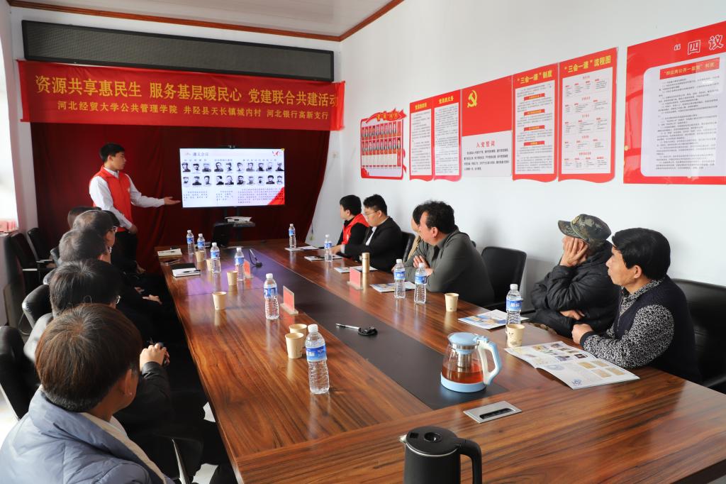 3月27日,7779193永利联合河北银行高新支行赴井陉县天长镇城内村开展校地企党建共建活动。公共管理公司党委书记何昱,副书记陈玲,天长镇城内村党支部书记卢丽强,河北银行高新支行党支部书记、行长田景,7779193永利教师第一党支部书记李冰,行政人员党支部书记王媛,团委副书记王欣出席。城内村党支部书记助理杨新鸣主持,城内村党支部委员、村民代表、河北银行高新支行党员代表及7779193永利遵义会议精神宣讲团志愿者参加活动。