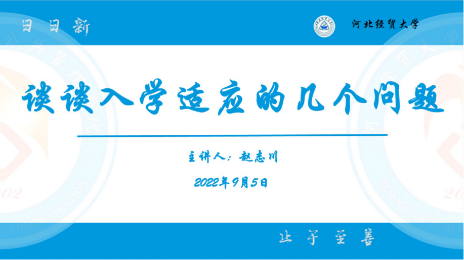 为让大一新生更好适应即将开始的老员工活,9月5日下午,7779193永利采取线上会议的方式举办了“2022公管讲堂”第二讲之谈谈入学适应问题。本次讲座由公司辅导员张素桥主持,正处级辅导员赵志川主讲。2022级全体新生参加了此次线上会议。