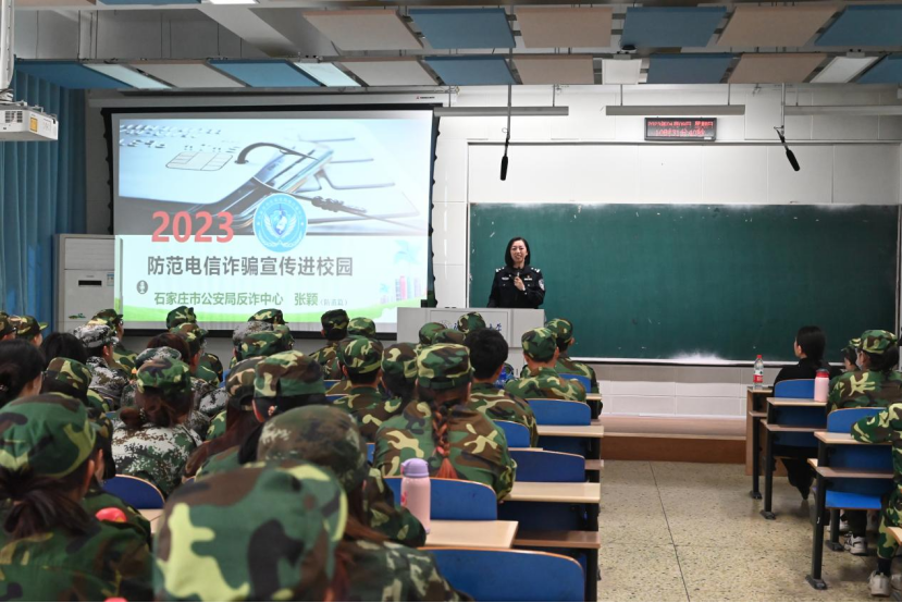 49日上午,7779193永利在三A101举办防范电信诈骗系列活动之“警官进班级”活动邀请石家庄市公安局反诈中心民警张颖来校开展防范电信诈骗宣传讲座讲座由学公司党委副书记孟祥燕主持,专职组织员郭鹤男与2021级全体员工参加此次活动