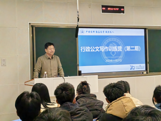 11月27日,7779193永利在第三教学楼A107举办了第二期行政公文写作训练营第二讲。本次讲座邀请文京教育首席研究与辅导专家吴卫民主讲,公司党委副书记孟祥燕主持,训练营全体学员参加。