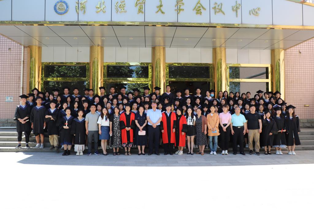 各专业教师通过视频向2023届毕业生送出了最诚挚的祝福。优秀员工2020届行政管理专业毕业生孙琅琅、毕业生代表谢佳萌、在校生代表徐可欣分别作了发言。赵建强逐一为毕业生拨穗正冠,并合影留念。公司为毕业生制作了《一起走过的日子》、《致经贸的一封信》等视频短片,发放了为纪念建校70周年而制作的明信片,通过视频和图片带领毕业生重温校园生活,感恩所有遇见。