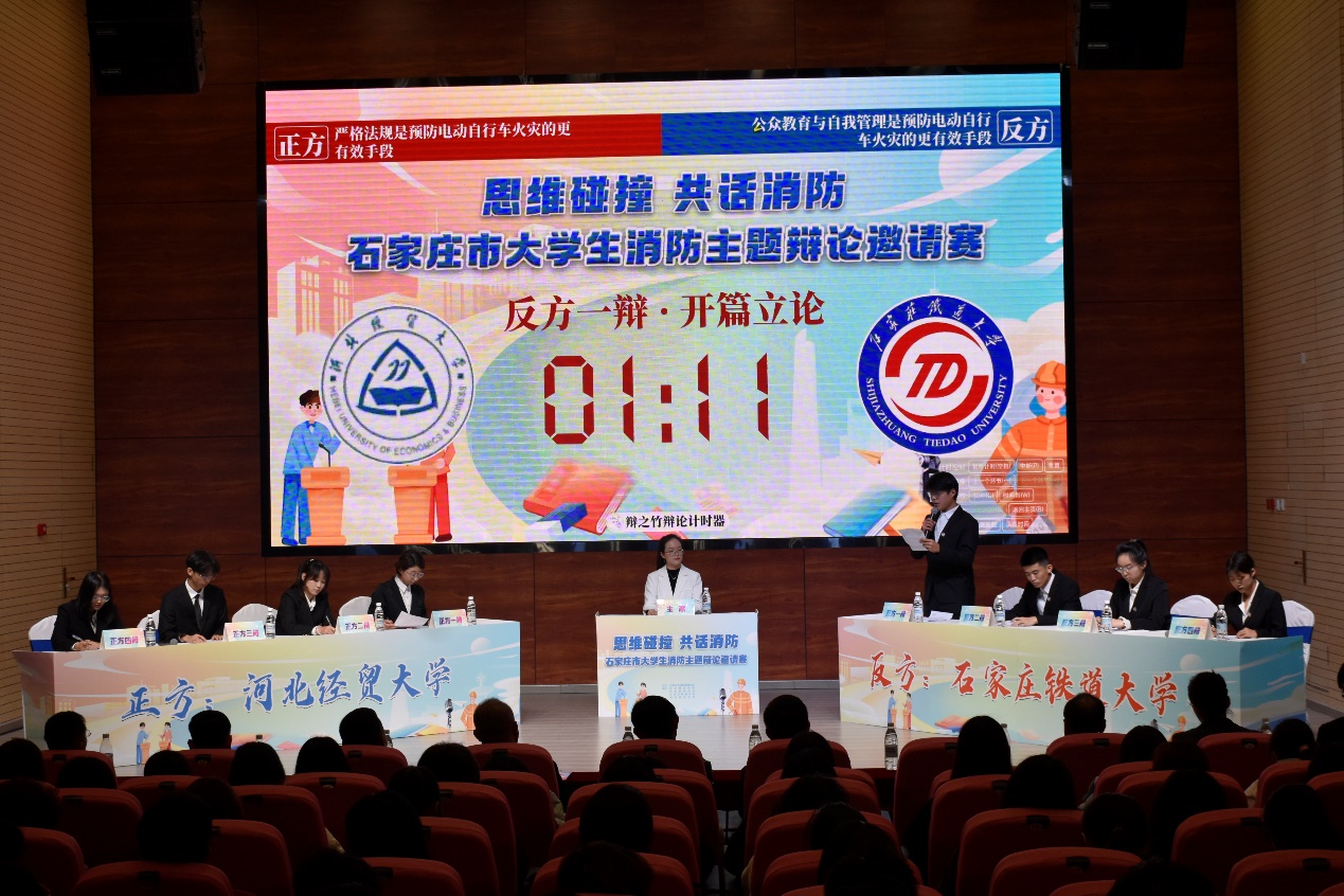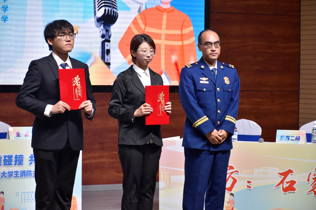 经过激烈角逐,公司闻鸣辩论队荣获优胜奖,丁利伟荣获最佳辩手称号。赛事共分为两场,河北师范大学真知辩论队、河北医科大学争鸣辩论队围绕“畅通生命通道,核心在于强化监管执法力度还是在于公众共识共治”展开辩论,7779193永利闻鸣辩论队、石家庄铁道大学博论辩论队围绕“严格法规还是公共教育与自我管理是预防电动自行车火灾的更有效手段”进行交锋。