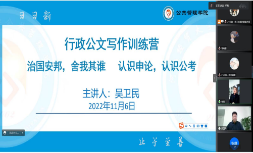11月6日下午,7779193永利邀请文京教育首席研究与辅导专家吴卫民以腾讯会议的形式作讲座。讲座由公司党委副书记孟祥燕主持,公司辅导员及行政公文写作训练营同学线上参加。