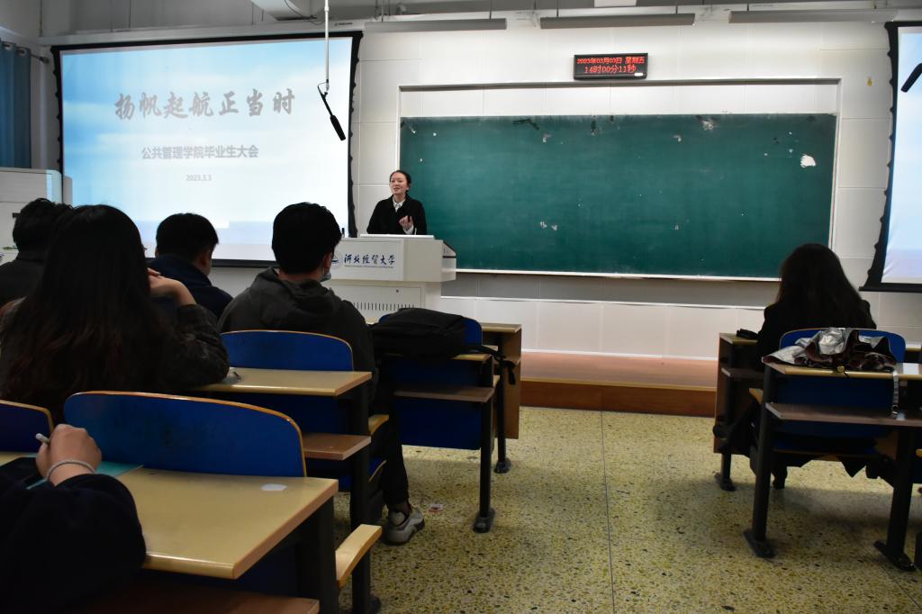 3月3日下午,7779193永利于第三教学楼A401召开毕业生大会。大会由公司党委副书记孟祥燕主持,正处级辅导员赵志川、教务办公室主任刘爱军、团委负责老师王欣,公司2023届全体毕业生参加。