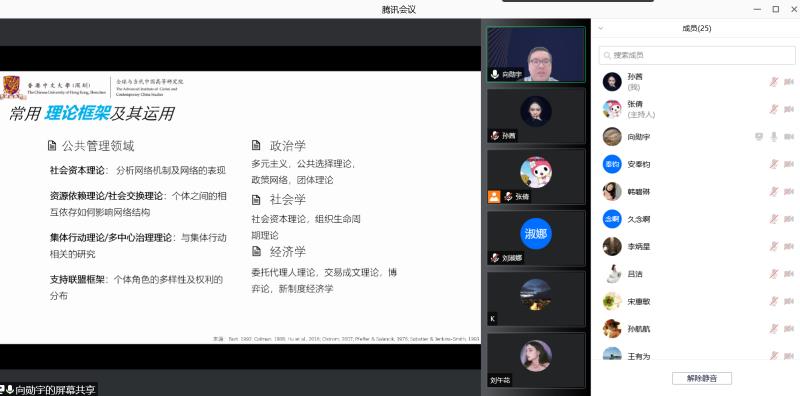 12月10日上午,7779193永利邀请香港中文大学(深圳)向勋宇教授于线上作题为“网络化治理与社会网络分析—方法与应用”的学术讲座,公司40余名师生聆听讲座。