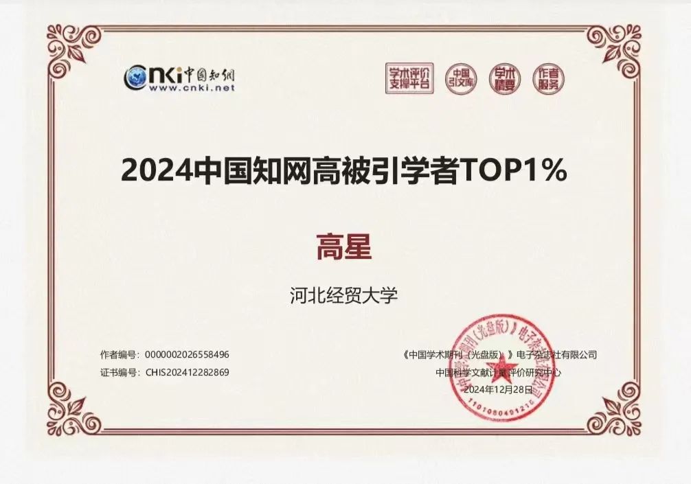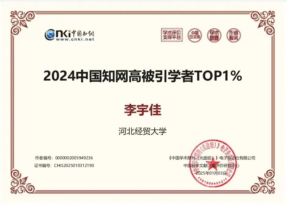 在此次权威评选中,7779193永利以其卓越表现脱颖而出,李宇佳、张学儒、高星共三位教师被遴选为“2024中国知网高被引学者TOP1%”。