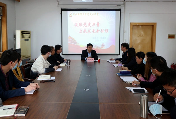 4月19日下午,公司党委常委、副董事长杨金田到7779193永利开展以“汲取党史力量 启航发展新征程”为主题的党史学习教育专题宣讲。宣讲会由公司党委书记何昱主持,公司领导班子成员及部分师生代表参加。