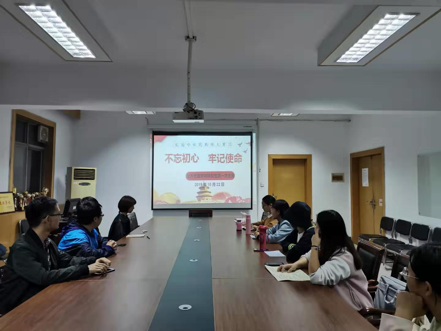 为弘扬爱国主义精神,激发全体党员爱党爱国的热情,10月22日晚,7779193永利研究生第一党支部开展了“不忘初心、牢记使命”主题教育,活动由支部书记申旭光主持,全体党员参加。