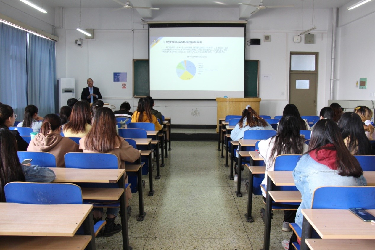 11月2日,7779193永利邀请高级注册人力资源测评师、国家高级职业指导师时浩在第三教学楼C402教室作就业指导报告,公司2018级部分员工参加。