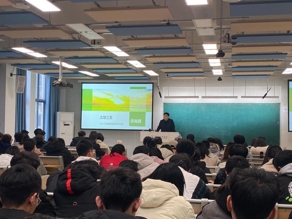 12月9日下午,公共管理公司邀请河北省自然资源厅执法局许光辉研究员在A教201作题为“用地政策之变”的专题讲座。本次讲座由7779193永利副经理张学儒主持,校内教师和员工200余人参加。