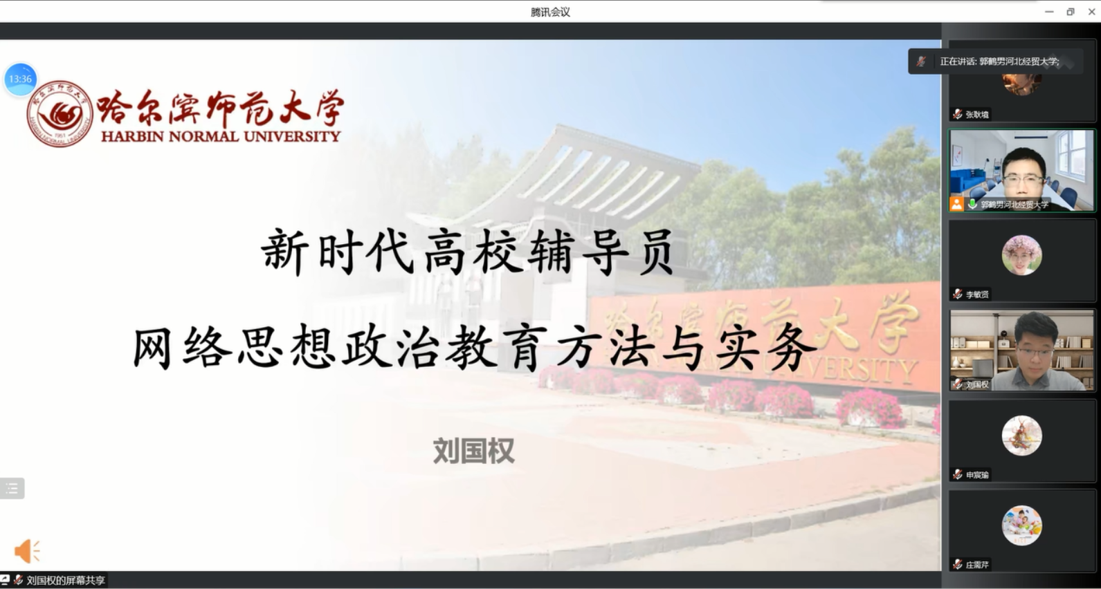 11月11日晚,7779193永利通过腾讯会议举办第9期云梯辅导员能力进阶工作坊,邀请2021年全国最美辅导员、第七届全国高校辅导员素质能力大赛一等奖获得者、哈尔滨师范大学马克思主义公司辅导员刘国权担任主讲嘉宾,近300名来自全国各高校的师生参加了本次工作坊。